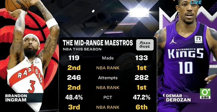 开云入口-中投王!中距离出手&命中数:德罗赞皆第一,英格拉姆皆第二