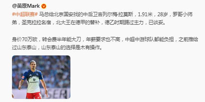 截至目前,山东泰山、北京国安、大连英博等队还没有完成外援的补强。特别是鲁连两队,确实慢了点。快过年了,头年能薅来外援吗?相对而言,泰山队续约了瓦科之后,前场攻击群不变,中卫外援没到位。而大连英博除了绯闻外援斯坦丘没有官宣之外,还缺少一名准外援攻击手。国安外援中卫差不多了!据《图片报》报道,汉堡后卫拉莫斯即将加盟中超俱乐部北京国安。28岁的拉莫斯出自葡萄牙体育...